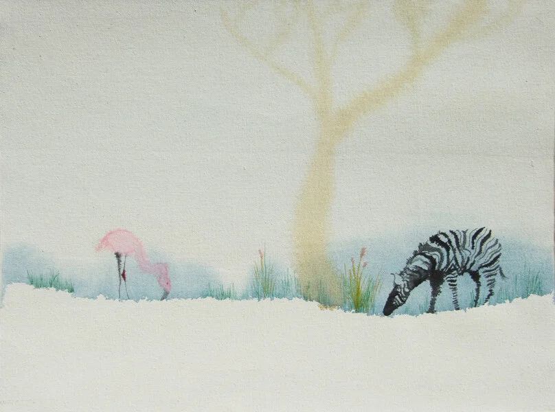 Flamingo & Zebra in Snow